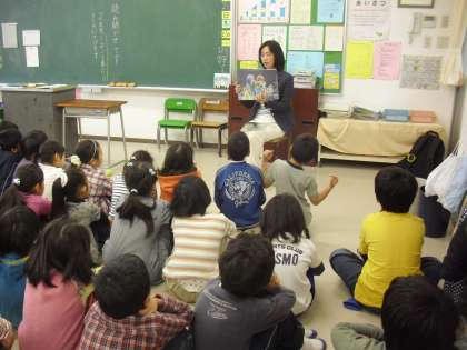 今年度は、新学習指導要領の完全実施の年度ですが、本校では既に移行期間から取り組んでいるところです。読書活動、言語活動の充実も同様です。読み聞かせをとおして子どもたちの「ことばの力」をはぐくみます。