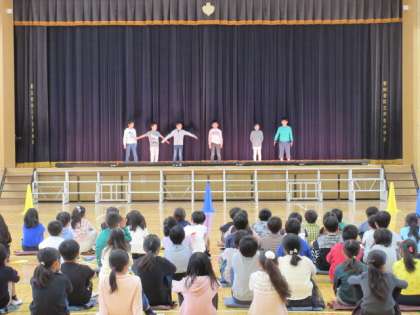 18日(月)の2時間目、3年生は劇の練習をしました。3年生は「どろぼう学校」を上演します。今回は、場面ごとに練習してきた劇を全員で見合いました。どの場面で移動するのかを理解しました。