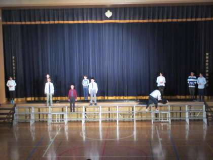 18日(月)の5・6時間目、6年生は2時間をかけて劇の練習をしました。6年生は「エルコスの祈り」を上演します。場面の移動のタイミングを確認してから、初めて劇の通し練習をしました。衣装を身に付け、照明担当、音楽担当も入って最後まで通しました。自分たちの課題も見付けることができていました。