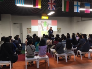 2グループに分かれてプラネタリウム見学と英語の体験活動を行います。みんな楽しんで学習に取り組んでいます。