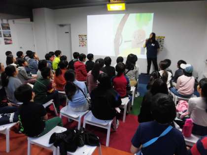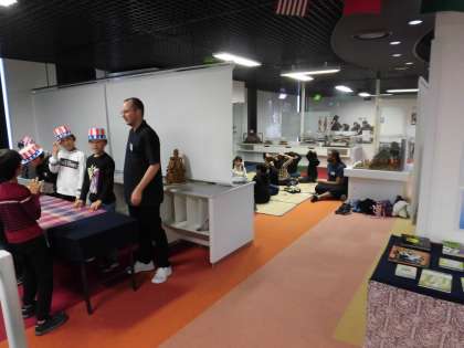 20日(水)の午前中、4年生は学校を離れて区立教育センターに学習に行きました。プラネタリウムでは星の学習を、タッチ・ザ・ワールドでは外国語の学習をしました。写真は出発前の様子と外国語を楽しんでいる様子です。