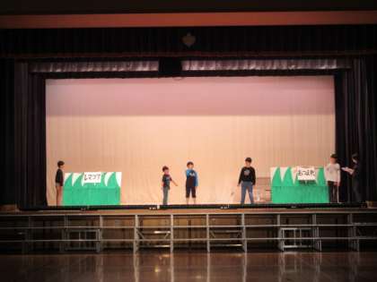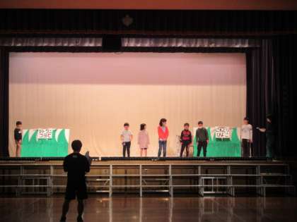 20日(水)の1時間目、ひかり学級は劇の練習でした。4年生がセンター移動教室に出発したため、4年生以外の子どもたちで練習をしました。大道具や小道具ができつつあり、それを手にしながら練習を進めました。