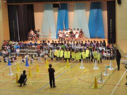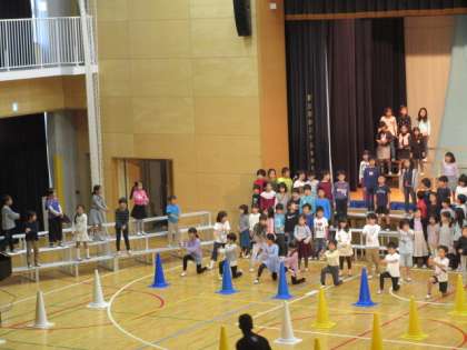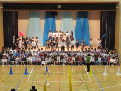 20日(水)の3・4時間目、2年生は劇の練習をしました。今回は2時間続きで行いました。背景に長い布がかけられ、雰囲気が変わりました。子どもたちは音楽に合わせて歌ったり、せりふを言ったりしていました。