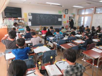 20日(水)の3・4時間目、3年3組は習字の時間でした。ひらがなで「つり」と書きました。今回は文字の「丸み」を意識して練習をしました。