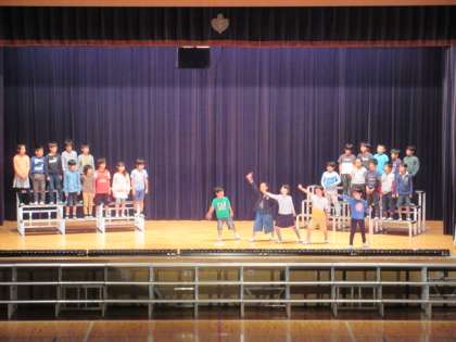 21日(木)の1・2時間目、3年生は劇の練習をしました。最初に全員合唱の練習をしました。その後、通し練習をしていました。