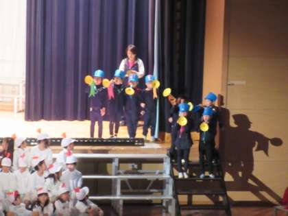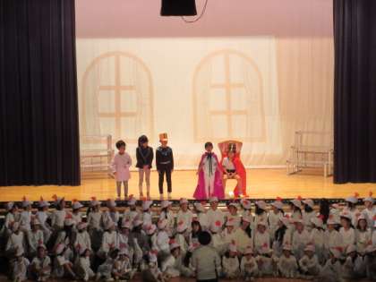 21日(木)の3・4時間目、1年生は劇の練習をしました。今回は衣装を着たり、背景の映像を入れたりしながら通し練習をしました。
