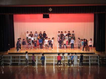 21日(木)の5・6時間目、4年生は劇の練習をしました。部分練習や歌の練習の最後に通し練習をしました。歌のタイミングや動きを互いに確認しながら、最後まで通すことができました。