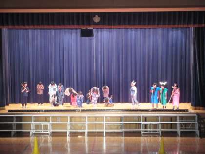 22日(金)の1時間目、4年生は学芸会の練習をしました。今回は衣装を身に付けて通し練習をしました。衣装をつけたことで、より気持ちが入っていました。