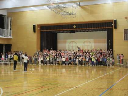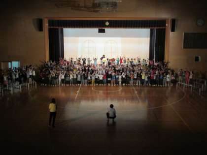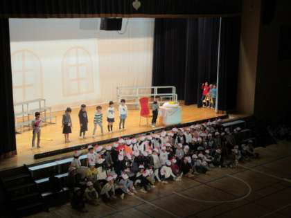 25日(月)の1時間目、1年生は劇の練習をしました。通し練習をしながら、フィナーレの練習も行いました。ピアノ伴奏を聞いてから全員でいうせりふがあるので、そのタイミングをつかめるように何回も練習をしていました。