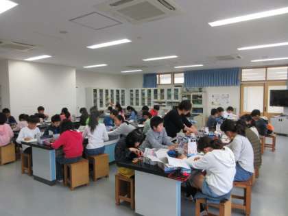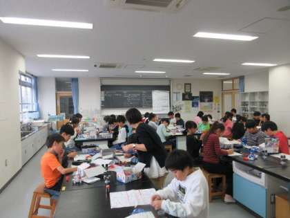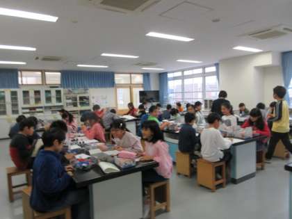 25日(月)の3・4時間目、5年3組は理科の時間でした。理科室で単元名「電流のはたらき」に取り組んでいました。一人一台実験キットをもち、コイルを巻いたり、電磁石について調べたりしました。