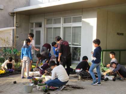 本校の委員会は全部で12あります。それぞれに委員長、副委員長を中心に話し合いをしたり、活動をしたりしました。写真は上から、栽培委員会、運動委員会、集会委員会の様子です。栽培委員会はプランターにパンジーの植え替えを、運動委員会はなわとび集会の練習をしていました。
