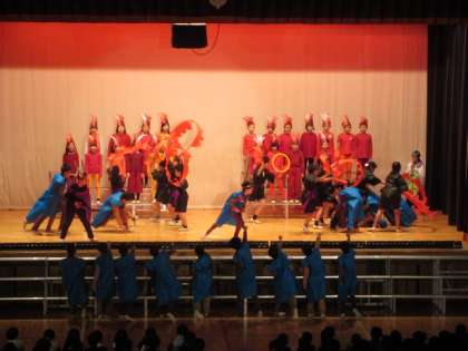 学芸会1日目。2番目の出演は4年生でした。「孫悟空」の劇を180人で作り上げました。牛魔王と悟空の戦いのシーンは迫力がありました。