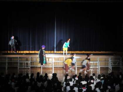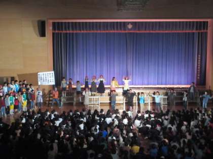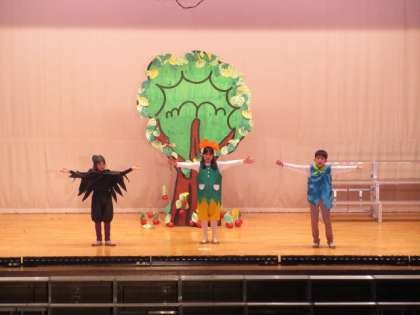 学芸会1日目。5年生は「魔法をすてたマジョリン」を全力で取り組みました。りんごが一斉に落ちるシーンでは驚きの声が上がりました。また、魔女達に負けまいと見ている子どもたちを巻き込んで会場中が歌「心から心へ」の大合唱となりました。