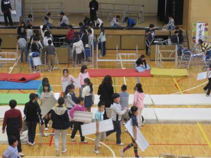 30日(土)の5時間目、5年生が体育館に集合しました。学芸会の片付けのためです。ここから6年生のバトンを受け継いでいきます。パイプいすをたたんだり、マットを運んだりしました。自らすすんで仕事をする姿が立派でした。