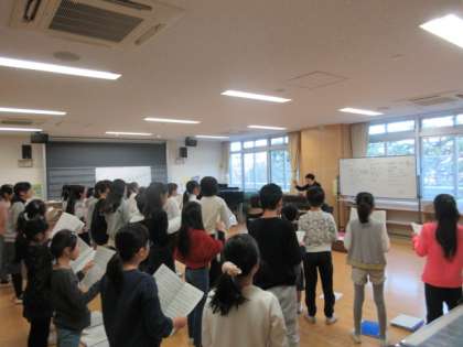 12月3日(火)、久しぶりに合唱団の朝練習がありました。学芸会を乗り越えた団員の次なる目標は「ウィンターコンサート」です。プログラムの内容を聞いてから、「シーラカンスをとりにいこう」の練習をしました。学年関係なく笑顔で歌う姿がすてきでした。