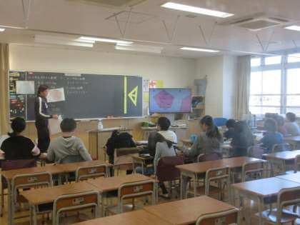 12月3日(火)の5時間目、5年3組と4組は算数の時間でした。3学級に分かれて「面積」の学習に取り組んでいました。今回は、測る回数をできるだけ少なくして四角形の面積を求めていました。