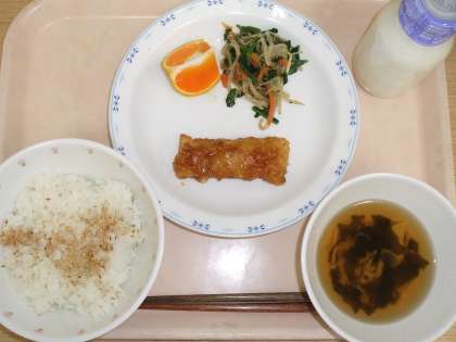 今日はくだものに早香を出しました。早香は、みかんとポンカンのかけ合わせで、今が旬の食材です。実はぎゅっと詰まっていて甘味があり、美味しくいただきました。風邪が流行るこの時期はビタミン類をしっかりとって、元気に過ごしましょう。