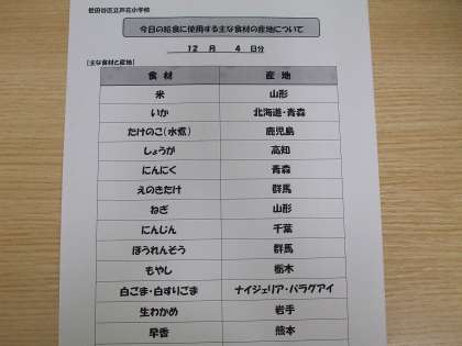 12月4日の給食