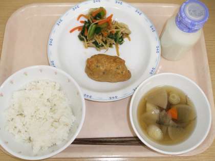 「いなりの肉詰め」の中身は、豚ひき肉の他に大豆やホールコーン、ひじきなどたくさんの食材を使用しています。また、調理員さんたちは、たくさんの数の「いなりの肉詰め」を1つずつ丁寧に包んでくださりました。調理員さんたちにも感謝をして、美味しくいただきました。
