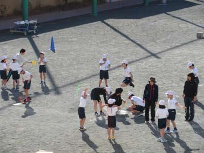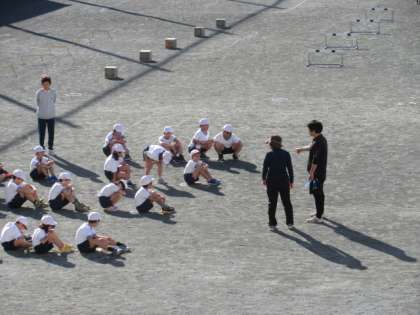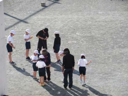 5日(木)の2時間目、ひかり学級は体育の時間でした。校庭でなわとびをしました。最初に一人ずつなわの長さを調節しました。その後、跳ぶ練習をしました。