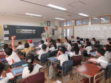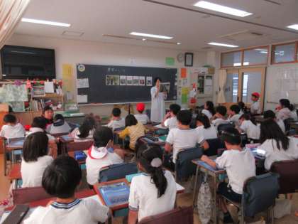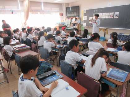 5日(木)の5時間目、3年3組は社会科の時間でした。農家の仕事の学習をしています。今回は、栄養士の先生が世田谷区内で栽培されている「大蔵大根」の話をしました。大根がどのように栽培されているのかを写真で紹介していました。子どもたちは話を聞きながら、夢中になってメモをとっていました。12日の給食で「大根カレー」が登場することも楽しみの一つになったようです。
