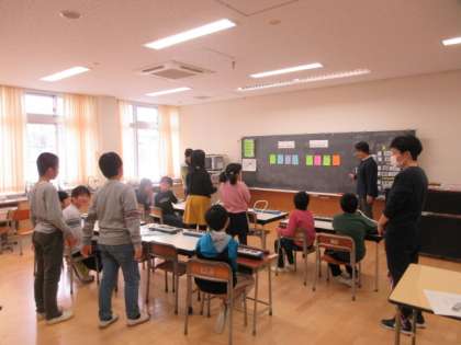 9日(月)の4時間目、ひかり学級は音楽と国語の時間でした。ランチルームでは音楽を、1組の教室では国語に取り組んでいました。音楽はボディパーカッションをしたり、リコーダーを吹いたりしました。国語は担任の先生が読み聞かせをしていました。