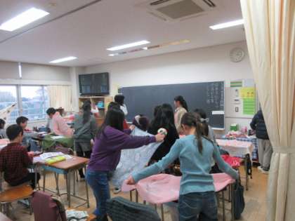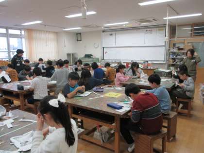 9日(月)の6時間目はクラブ活動でした。写真は上から、工作クラブ、日本文化クラブ、科学クラブです。工作クラブは「立体高層ビル」を、日本文化クラブは「風呂敷でものを包もう」を、科学クラブは「バスボム作り」をしていました。