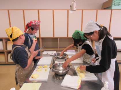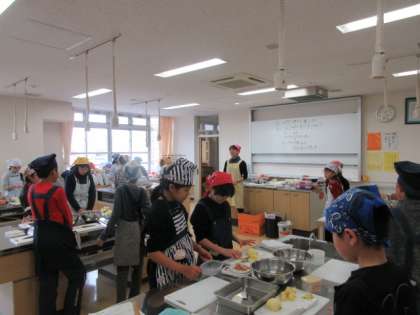 10日(火)の3・4時間目、5年1組は家庭科の時間でした。「包丁修行の巻」と題して、リンゴの皮むきに挑戦していました。条件はリンゴを丸ごとむく、できるだけ薄く長くむくです。一人1個のリンゴを大事に大事にむいていました。