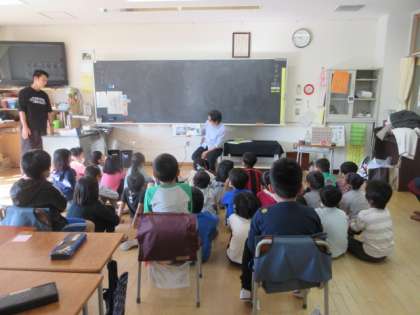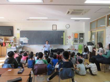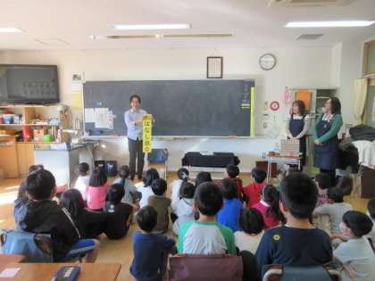 12日(木)、粕谷図書館から3名の方にお越しいただき、2年生を対象にしたお話会をしました。地域の図書館を利用している人がたくさんいることもわかりました。素話や紙芝居、手遊び歌などで楽しい時間を過ごしました。写真は2時間目の2組の様子です。