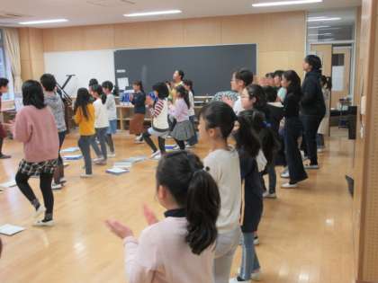 13日(金)の朝、合唱団の練習がありました。「シーラカンスをとりにいこう」の練習をしていました。リズムを正しく取るために手拍子を打ったり、足踏みをしたりしました。両手両足を使ってのリズム打ちに最初は戸惑っていましたが、徐々に慣れてきました。