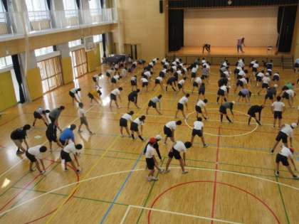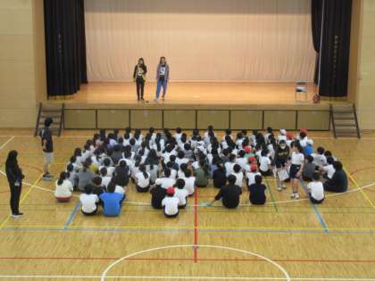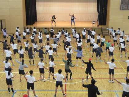 授業の最後に、参観にいらした保護者のみなさんの方を向いて2クラスずつ発表会をしました。照れる姿も見せましたが、音楽が流れれば頑張って披露することができました。始まる前は多少抵抗を感じていた子どもたちも楽しく体を動かすことができました。