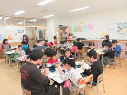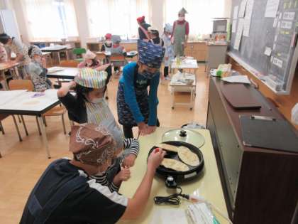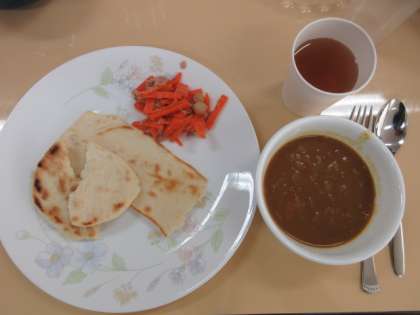 カレーを煮込んでいる間に、ナンをホットプレートで焼きました。両面を焼くためにひっくり返すことも自分でやりました。自分たちで作った料理を「おいしい!」と言いながら笑顔で食べていました。
