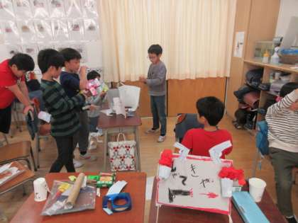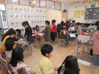 2年生の「おもちゃ大会」は中休みに申し送りをしたり、不具合を直したりして後半に臨みました。「来てくださーい。楽しいですよ。」という呼び声があったり、遊び方の説明をしたりして大活躍でした。