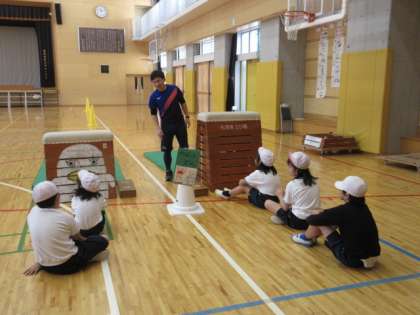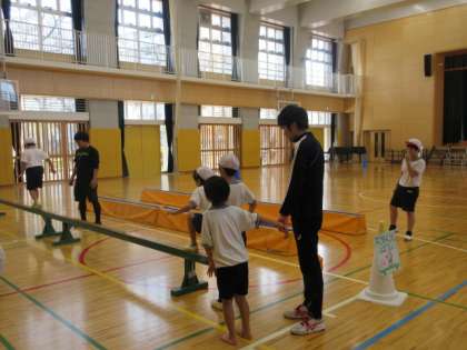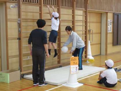 20日(金)の3時間目、ひかり学級は体育の時間でした。体育館で4種類の技に挑戦していました。跳び箱に乗ってからジャンプしたり、平均台を歩いたり、肋木にぶら下がったりしました。