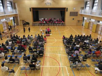 21日(土)午前10時20分から、合唱団による「ウィンターコンサート」が開催されました。プログラム順に紹介します。6年生2名の「はじめの言葉」に続いて、全員合唱「We wish you a merry christmas」、3年生の学年唱「赤鼻のトナカイ」「Pie Jesu」と進みました。