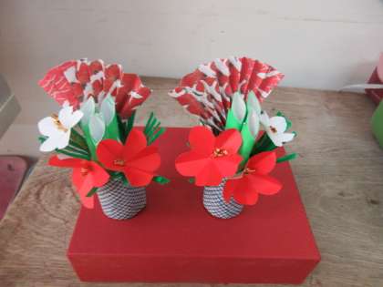 23日(月)のクラブ活動は11回目でした。貴重な時間だからこそ、子どもたちは楽しみにしているのです。写真は上から、百人一首クラブ、日本文化クラブです。日本文化クラブは、ゲストティーチャーにお越しいただくことが多いです。今回は、折り紙で「門松作り」に挑戦しました。3枚目の写真が完成品です。