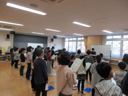 24日(火)の朝、合唱団の練習がありました。今学期最後の練習でした。先週のウィンターコンサートを振り返り、早くも次の目標「東京都合唱祭」に向けての取り組みが始まりました。子どもたちの手には新しい楽譜がありました。歌詞を黙読し、音読し、CDを聞いて曲のイメージをもちました。練習時間の最後には、最初のフレーズの3部合唱をして手応えを感じて終わりました。