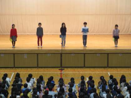 25日(水)、2学期の最終日です。体育館で終業式を行いました。校長先生から「冬休みも交通事故等に気を付けること、新しい年を迎えるために整理整頓をすること」のお話がありました。児童の言葉は2年生でした。2学期に頑張ったことや3学期に頑張りたいことを大きな声で話しました。