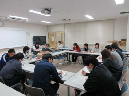 25日(水)の放課後、若手の先生を対象にした研修会「若葉の会」が会議室で行われました。今回の講師は、4年の先生です。作文指導をテーマに話を聞きました。日記を通して自分の気持ちや考えを表現できるようになってほしいと考え、初任の頃から続けているそうです。話を聞いていた先生からは次々に質問が出ていました。