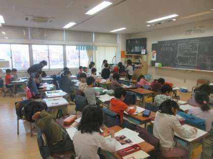 9日(木)の1時間目、1年3組と5組は生活科の時間でした。冬休みに取り組んだ「かぞくだいすき」の発表会に向けて、カードに言葉を書いたり、順番に担任の先生と相談をしたりしていました。どんなお手伝いをしたのでしょうか。今から楽しみです。