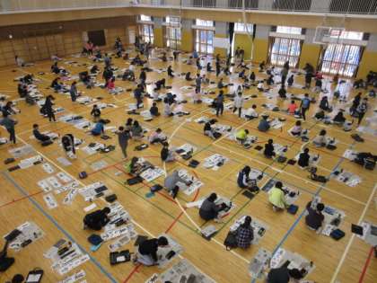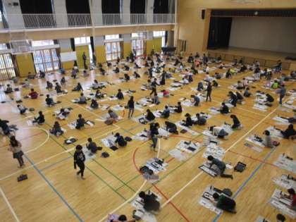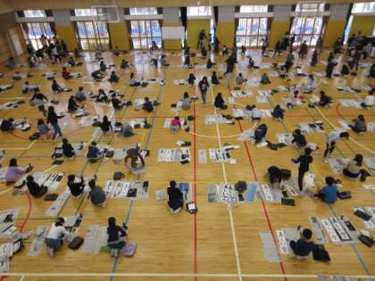 10日(金)の3・4時間目、4年生は席書会に臨みました。「美しい空」と書きました。清書として1枚を提出し、片付けも上手にできました。