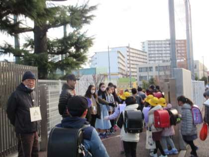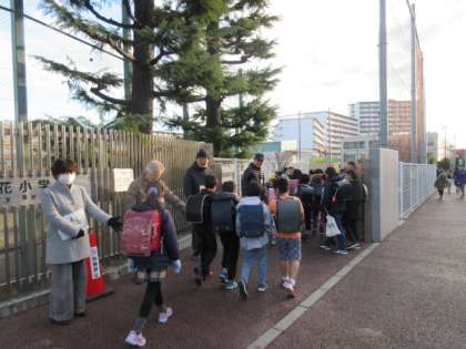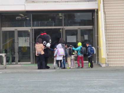 16日(木)、朝のあいさつキャンペーンも3日目になりました。保護者、地域の皆様にも参加していただきながら、子どもたちの登校を見守っいます。当番の6年生も元気に下級生を迎えています。からぴょんは、1階ピロティ入口で子どもたちを待っています。