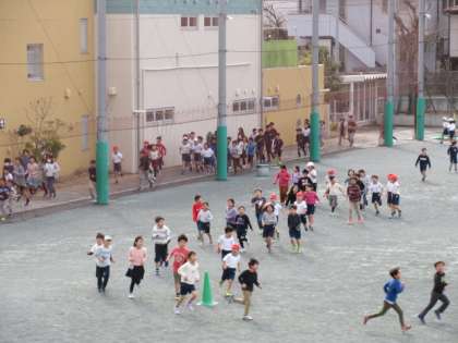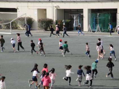 16日(木)の中休みは持久走タイムでした。今回は、2年生、4年生、6年生、ひかり学級が対象です。他の学年は自由参加です。5分間、自分のペースに合わせて一生懸命走っていました。