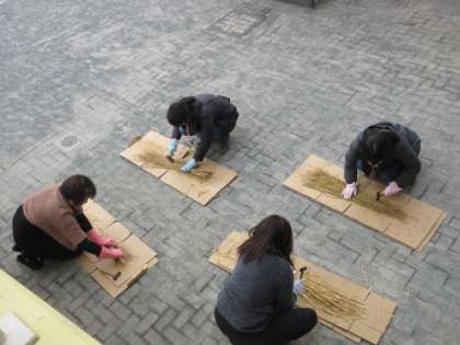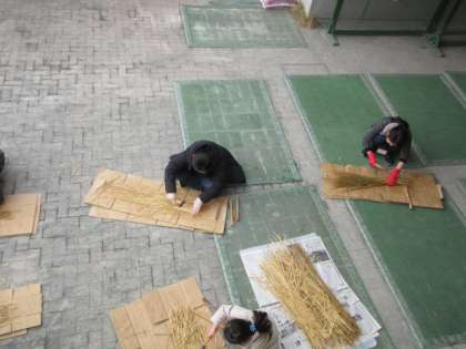 16日(木)の午後、学校支援コーディネーターの皆さんを中心に、「わら打ち作業」をしてくださいました。次回の日本文化クラブ活動において「わらぞうり作り」をするための取り組みです。子どもたちのために寒い中をありがとうございました。