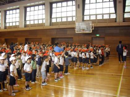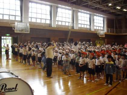 演奏は器楽委員会の5・6年生です。赤組、白組それぞれに力いっぱい歌いました。今日は3・4年生が遠足でいませんでしたが、当日は全員そろって応援歌でも盛り上がると期待します。