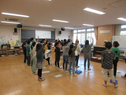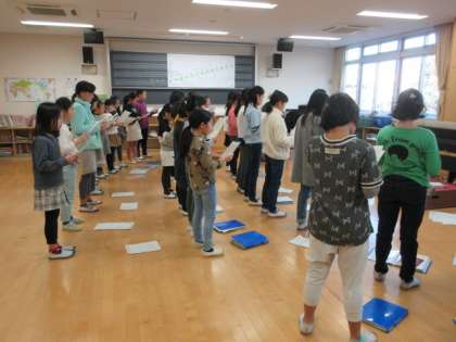 21日(火)の朝、合唱団の練習がありました。今回は、「ふるさと」の曲を練習しました。斉唱ではなく3部に分かれて歌います。そのため、音取りの練習をしていました。