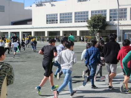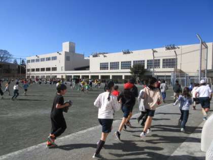 21日(火)の中休みは持久走タイムでした。1年生、3年生、5年生が対象ですが、他学年の子どもたちもすすんで走っています。5分間を自分のペースで走っています。友達と走ることでやる気にもつながっています。