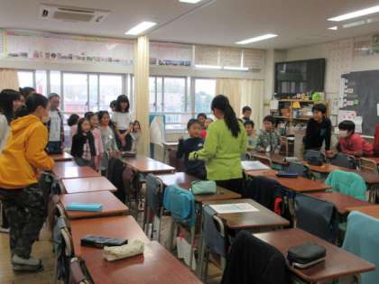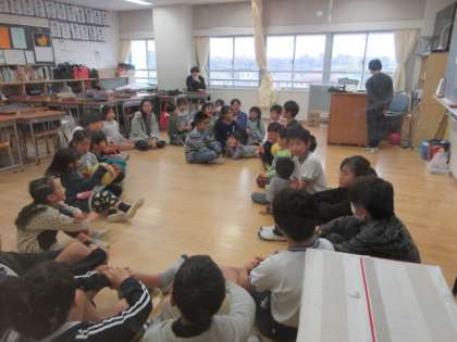 23日(木)午後1時5分からフレンドワールドを行いました。兄弟姉妹学年での活動です。雨のため、校庭での遊びを計画していた学年は雨バージョンの遊びをして楽しみました。写真は、6年生と1年生の様子です。