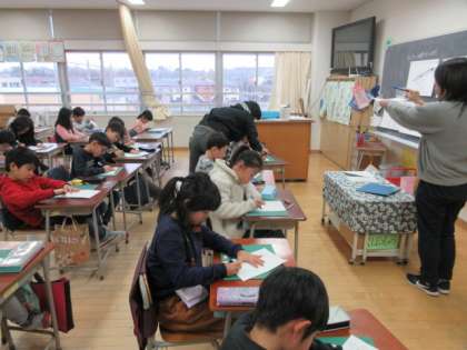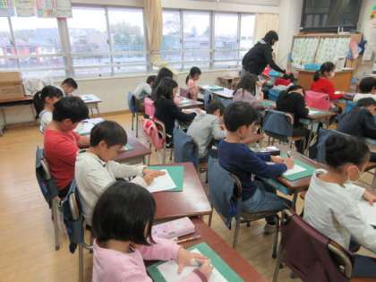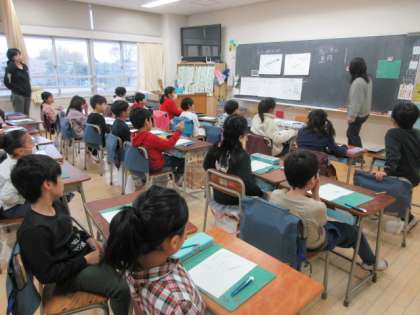 27日(月)の5時間目、2年5組は図画工作の時間でした。今回は図画工作専科の先生の指導で「カッターの使い方」を学びました。カッターの持ち方、手の置き方など一つ一つを確認してから、直線や曲線を切る練習をしました。