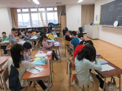 27日(月)の6時間目、2年生と3年生を対象にした寺子屋クラブがありました。それぞれに教員が2名入って子どもたちの指導にあたっています。保護者の皆様にもお越しいただき、丸付けをしていただいています。いつもありがとうございます。